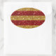 Gold and Red Glitter Stripes Printed Oval Sticker