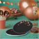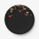 Gold and red hearts on black background paper plate