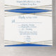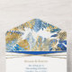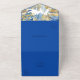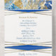 A beautiful royal blue and gold tropical leaf design all in one wedding invitation, making your wedding plans so much simpler