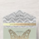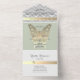 Elegant, modern, sage green and gold foil all-in-one wedding invitation with adorable unique butterfly - symbol of spiritual rebirth, hope, and life.