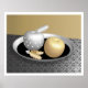 Print of Gold and silver Christmas apples on a silver platter on a silver lace tablecloth with a gold damask background