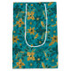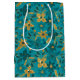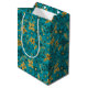 Gold and Teal Blue Christmas Poinsettia Flowers Medium Gift Bag