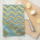 Gold and Teal Chevron Pattern Tea Towel