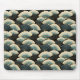 Gold and Teal Patterned Japanese-inspire Fan Motif Mouse Pad