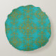 Gold and Turquoise Floral Damask Style Pattern Round Cushion