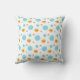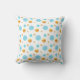 Beautiful throw pillow with gold and turquoise polka dots on white background.