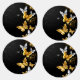 Gold, jewellery and white butterflies on black background. Golden butterfly.