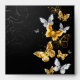 Gold, jewellery and white butterflies on black background. Golden butterfly.