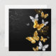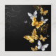 Gold, jewellery and white butterflies on black background. Golden butterfly.