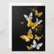 Gold, jewellery and white butterflies on black background. Golden butterfly.
