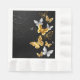 Gold, jewellery and white butterflies on black background. Golden butterfly.