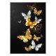 Gold, jewellery and white butterflies on black background. Golden butterfly.