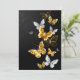 Gold, jewellery and white butterflies on black background. Golden butterfly.
