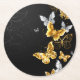 Gold, jewellery and white butterflies on black background. Golden butterfly.