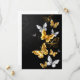 Gold, jewellery and white butterflies on black background. Golden butterfly.