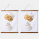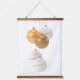 Decorative globes of gold and white make an elegant look as they hang asymmetrically from golden chords.