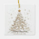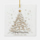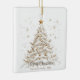 Gold and White Christmas Tree in Snow Ceramic Ornament