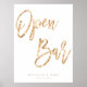 Gold and white Open Bar wedding reception sign (poster) with gold foil effect (faux, printed as an image) and customisable text - you can add bride's and groom's name and wedding date. Dimensions of the sign print (poster) are 18 inches by 24 inches.