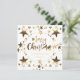 Faux Gold and White Christmas Card, Faux Gold Script Stars Starry Night White Background Modern Chic Merry Christmas Elegant Christmas Card