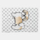 Destei's original cartoon illustration of a cute gold and white colour Shih Tzu breed dog. The background has a pattern of grey dog paw prints.