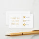 A minimalist white insert card with warm gold effect accents pairs a friendly "Thank you for your purchase" with a neat vertical divider and matching social media icons, creating a polished appreciation touch for Etsy parcels and small business orders. The right column provides space for social handles to encourage follows and reviews, while the reverse can hold shop details, website, email, phone, or a short product care guide to support post purchase engagement. The gold tone is a printed effect for consistent results across print runs. Icon sets and text are fully customizable to match brand style and packaging aesthetics.