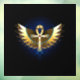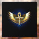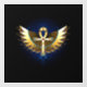 Golden Egyptian ankh with patterned, shiny wings on a black background. Magic symbol.