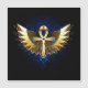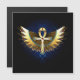 Golden Egyptian ankh with patterned, shiny wings on a black background. Magic symbol.