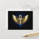 Golden Egyptian ankh with patterned, shiny wings on a black background. Magic symbol.