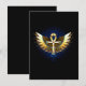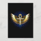 Golden Egyptian ankh with patterned, shiny wings on a black background. Magic symbol.