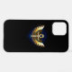 Golden Egyptian ankh with patterned, shiny wings on a black background. Magic symbol.
