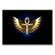 Golden Egyptian ankh with patterned, shiny wings on a black background. Magic symbol.