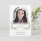 An elegant personalised order of service funeral memorial program featuring a gold arch and watercolor greenery foliage. Designed by Thisisnotme©