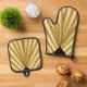Gold Art Deco Design Oven Mitt & Pot Holder Set