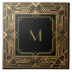 Bring a touch of vintage glamour to your home with this stunning Art Deco monogram ceramic tile. Featuring a striking gold geometric border and the initial elegantly displayed in the center on a deep black background, this tile evokes the opulent spirit of the 1920s. It's perfect for adding a sophisticated accent to kitchens, bathrooms, or as a decorative wall piece. The intricate detailing of the gold pattern, inspired by classic Art Deco motifs, creates a captivating visual focal point, making any space feel uniquely luxurious and timeless. This tile is an exquisite choice for those who appreciate bold design and classic elegance.