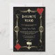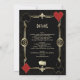 Elegant Casino Royale and Art Deco 20s themed card design. It features vintage art deco style, a Roaring 1920's old Hollywood faux gold frame with gold Fleur-de-lis, pair of dice, playing cards suits (simulating playing cards), on gold black Art Deco pattern background. Use Personalise tool to add your information. More ideas in my Casino Bachelorette Collection.