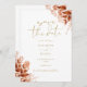 This elegant autumn fall rustic floral save the date invitation can be personalised with your information in chic gold typography with your wedding website QR code and details on the reverse. Designed by Thisisnotme©