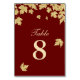 Gold Autumn Leaves Burgundy Red Fall Wedding Table Number