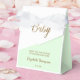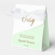 Personalised these baby shower favour boxes the baby's green baby shower theme. Surprise the mum-to-be seeing her name on these boxes for her special baby shower. Modern and simple, thank you packaging for giveaways. Modern and dynamic diagonal with sophisticated gold print "Baby" Script with customisable text.