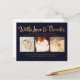 Faux gold foil script cursive elegant lettering on the front of this designer navy blue postcard onto which you add your own new baby photo portraits. Holds 3 baby photos. Easily and quickly personalise this designer professionally printed thank you/sip and see postcard here and now by just typing over the example text and adding your own photographs. Elegant, chic, simple and classy gold script/cursive typography.