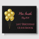 A birthday guestbook perfect for a modern, glamourous gold, pink and black themed 21st or other birthday with funky gold balloons against a customisable background. Text and background colour are fully able to be customised.