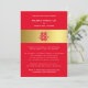 Specially designed for a Chinese wedding, this card features the “Double Happiness” symbol. The "Double Happiness" spelled xi or "hsi" in Mandarin and pronounced "shuang-xi" is a well-known Chinese character used traditionally in Chinese weddings as a symbol of love, happiness, and luck for the newly wedded couple. The use of the color red is an auspicious, as well as a popular color in Chinese culture, symbolizes luck, happiness, and joy. Whilst the gold-colored band symbolizes wealth and prosperity. The back of the card also features a gold band including the initials of the wedded couple.