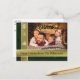 An attractive and eye catching Christmas card with your family photo highlighted by gold bands and a Christmas green background. Your text along the bottom band in an easy to read matching dark green font.You can personalise the backside Christmas greeting, your return address and your names in script near the bottom with space for you to add a handwritten personal note.