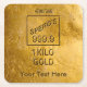 An stamped, one kilogram bar of 999.9 percent pure gold. Text reading, "SPERO'S 999.9" and "1 KILO GOLD" also appear, along with a serial number. Customise by adding your own additional text.