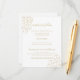 Gold baseball wedding reception information card includes time line of events, directions and accommodations and website information, with plenty of open space for additional text.