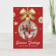 Send stylish warm wishes these holidays with the Gold Bauble Family Photo Christmas Card on a festive red background, personalised with your family photo and names. A perfect blend of style and personal sentiment, this card features a gold bauble frame and editable text "Seasons Greetings."