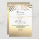 Simple, elegant, sand beach wedding invitation with beautiful foil rope heart and giant gold palm leaves. Perfect choice for contemporary summer weddings.