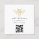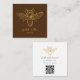 Modern square business card features gold vintage bee illustration on dark brown background with contemporary text on front, and  customisable QR code for your website or social media on back.