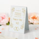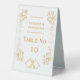 Gold coloured wedding table number bells design. You can customise this gold coloured wedding table number with your own wedding details. Should you require any help with customising then contact us through the link on this page. Bells scrollwork design personalised gold coloured wedding table number