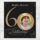 Gold Black 60th Birthday Elegant Calligraphy Photo Wine Label. And elegantly designed special birthday celebration invitation, featuring a custom photo of birthday person and script calligraphy with vintage flourish elements. Simple enough to fit a variety of themes and colours!