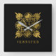 Gold Black Ancient Greek Meander Monogram Square Wall Clock